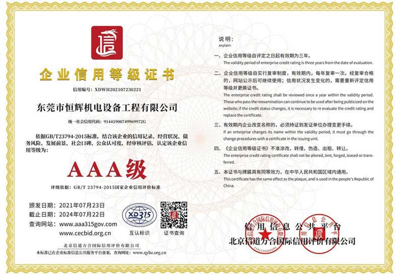 東莞市恒輝機(jī)電設(shè)備工程有限公司評為AAA級信用企業(yè),編號:XDWH202107230221。獲得AAA級企業(yè)信用等級證書。恒輝機(jī)電生產(chǎn)加工各型號螺旋風(fēng)管,不銹鋼風(fēng)管,焊接風(fēng)管,通風(fēng)管道,不銹鋼制品等......承接通風(fēng)管道安裝工程,通風(fēng)除塵工程,通風(fēng)降溫工程等,歡迎來電咨詢業(yè)務(wù):13829251925 劉先生。